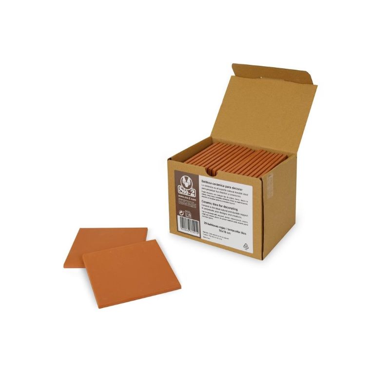 Plăcuță de ceramica biscuită pătrată, de culoarea teracotei, ideala pentru proiecte creative. Placi ceramice de calitate superioara, rezistente, potrivite pentru decorare.