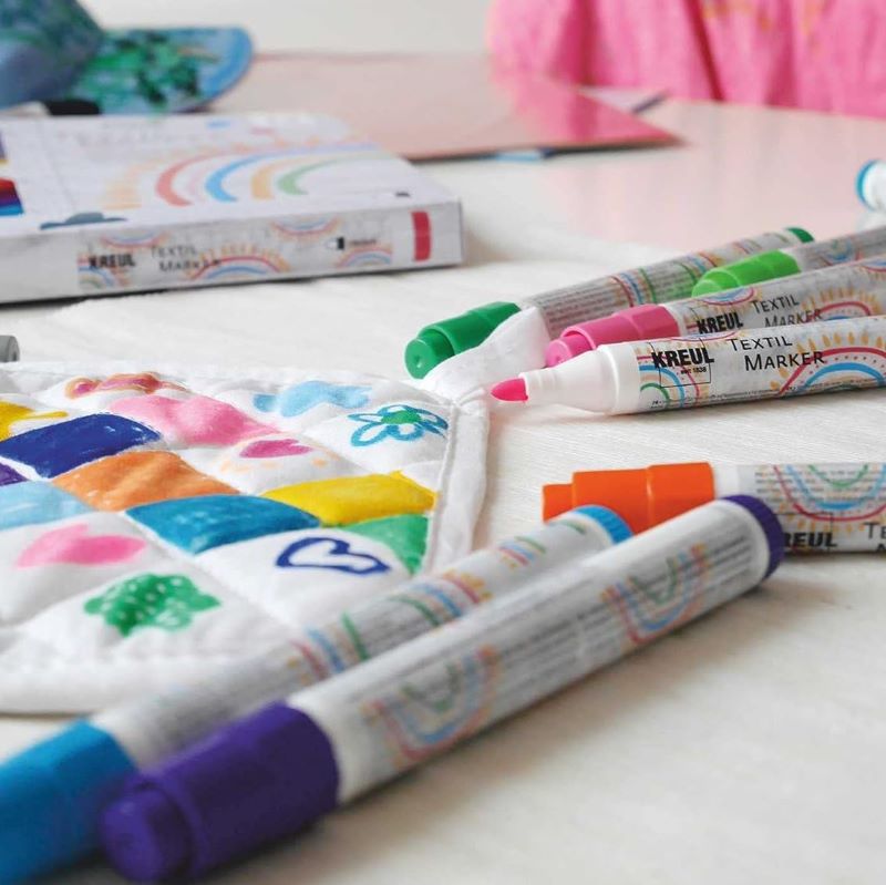 Setul contine 12 markere pentru textile de culoare deschisa, C. Kreul, umplute cu cerneluri pe baza de apa. Ideale si pentru pictură pe bumbac, in, piele, hârtie și lemn.