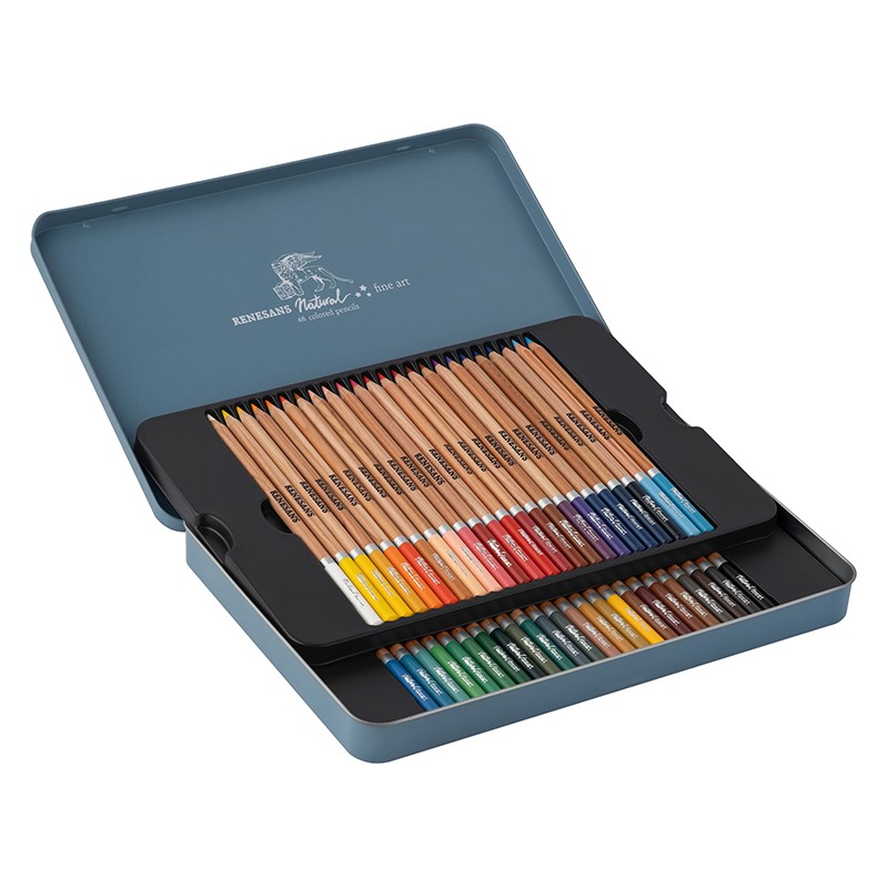 Set 48 creioane colorate, cutie metalica, Renesans Natural.