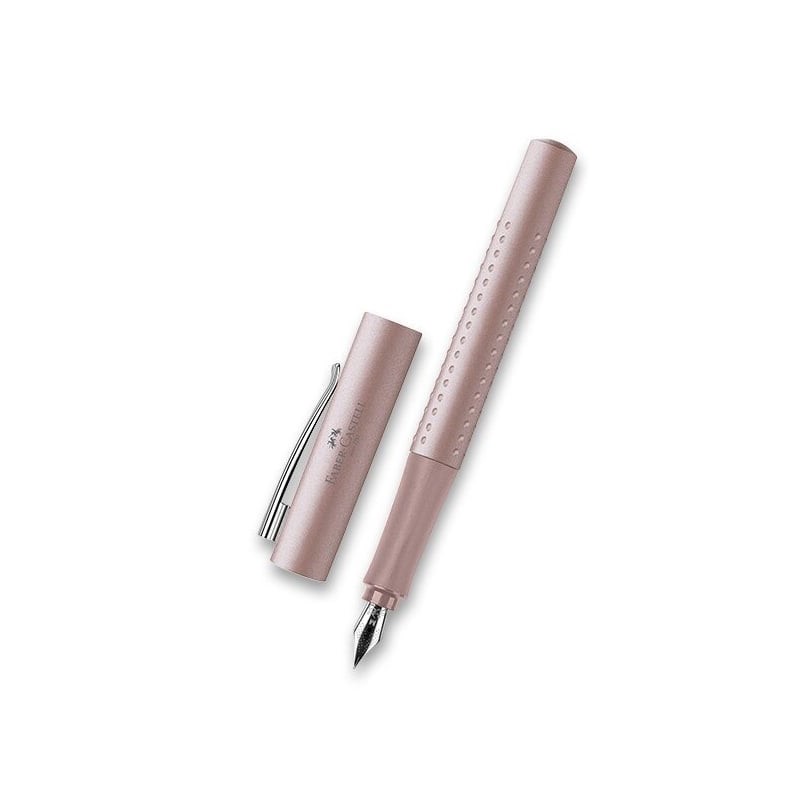 Stiloul Grip 2011 de la Faber-Castell in nuanța delicata Rose Pale, varianta cu penita medie (M) din otel inoxidabil, perfect pentru cei care apreciaza eleganta si functionalitatea in acelasi produs.